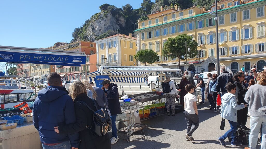 Wandelend langs de boten van Port Lympia, kun je bij de lokale visboer in de haven de visvangst van de dag al genieten.